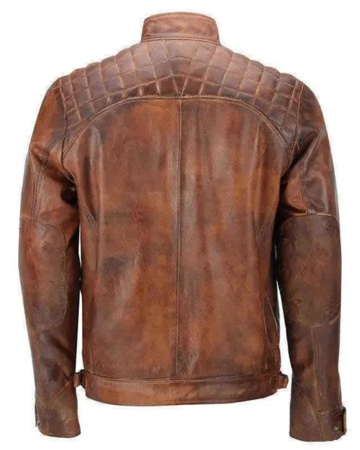 Classic Diamond Leather Jacket Brown Distressed quantity